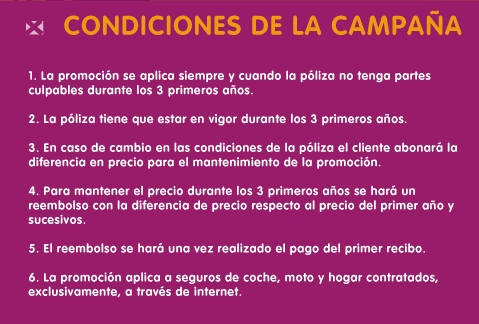 2-Si desea modificar las condiciones de la póliza Vd tendrá que abonar la diferencia en precio para el mantenimiento de la promoción.